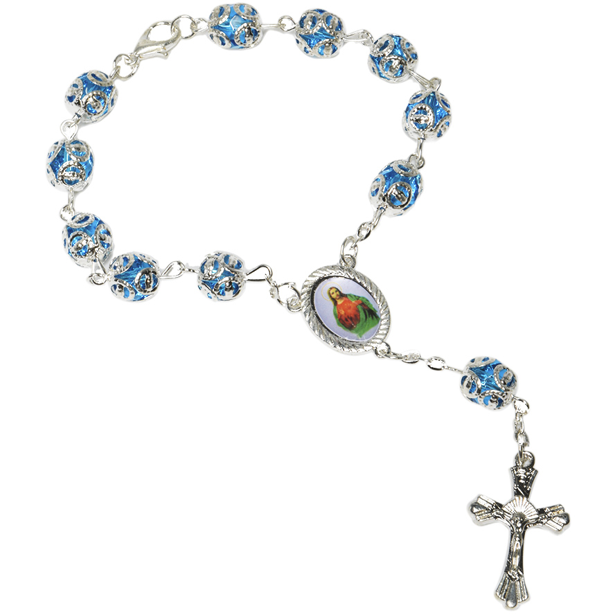 Blue Crystal Rosary Bead Bracelet